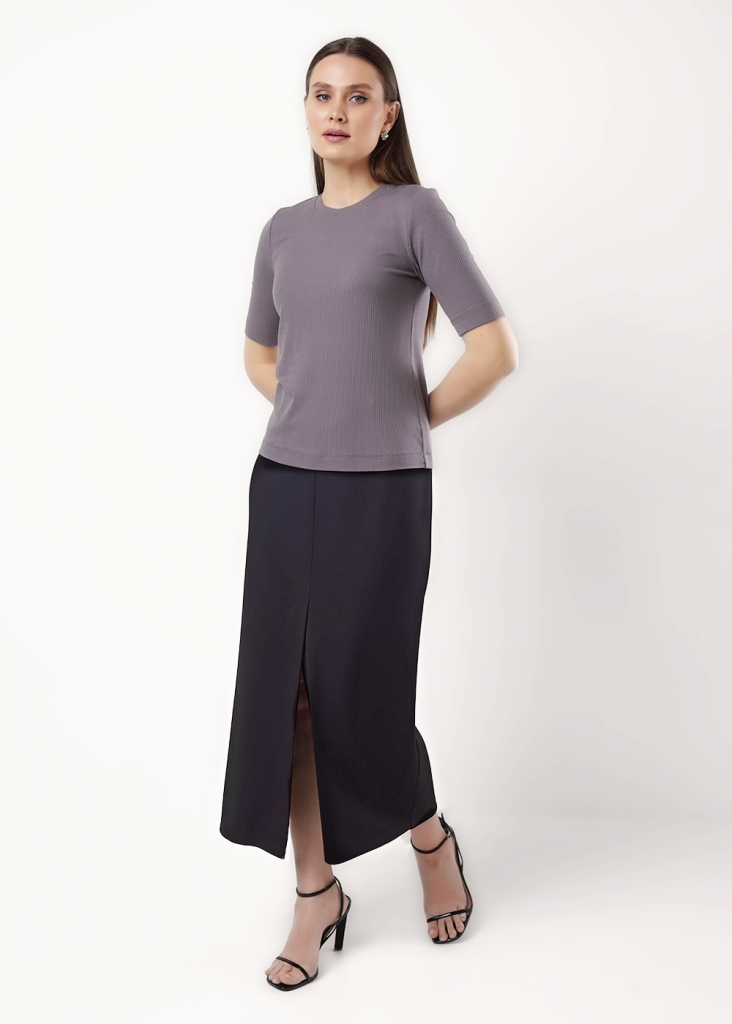 Футболка из трикотажного полотна кашкорсе, прямого кроя. Короткий втачной рукав. Округлая горловина с обтачкой.