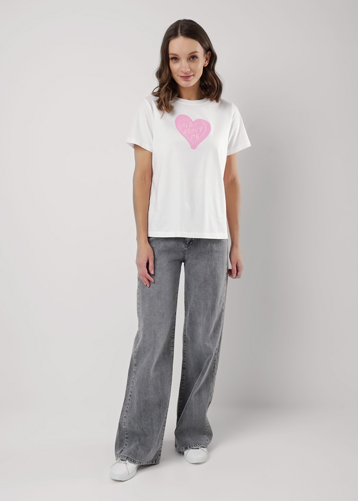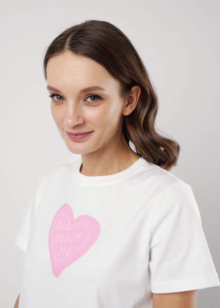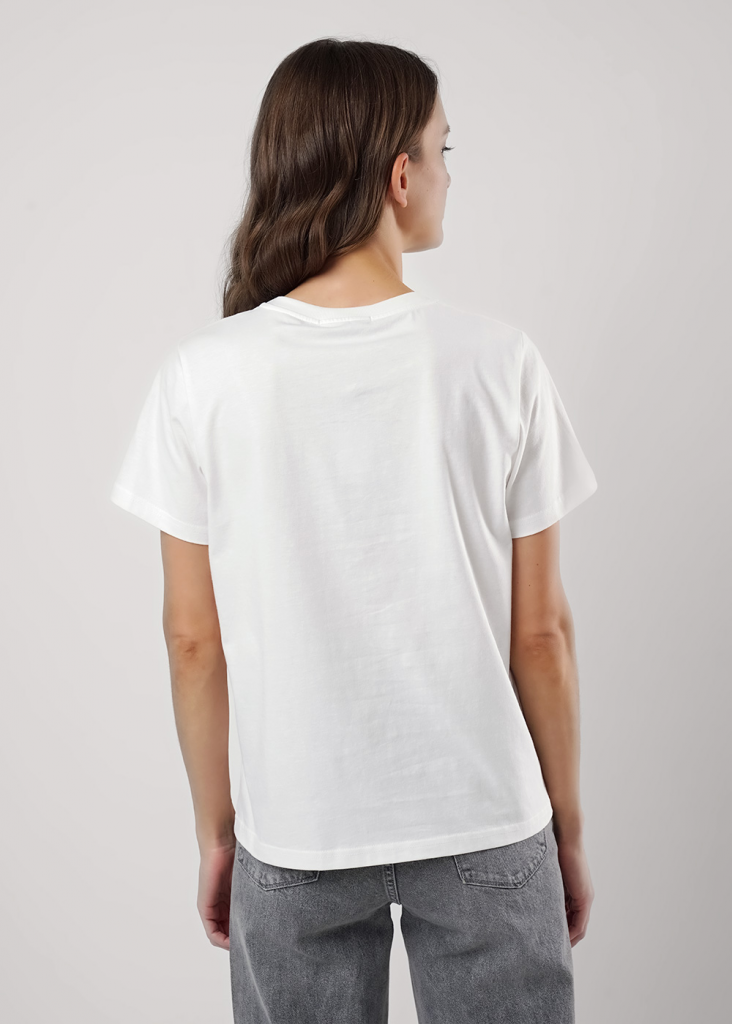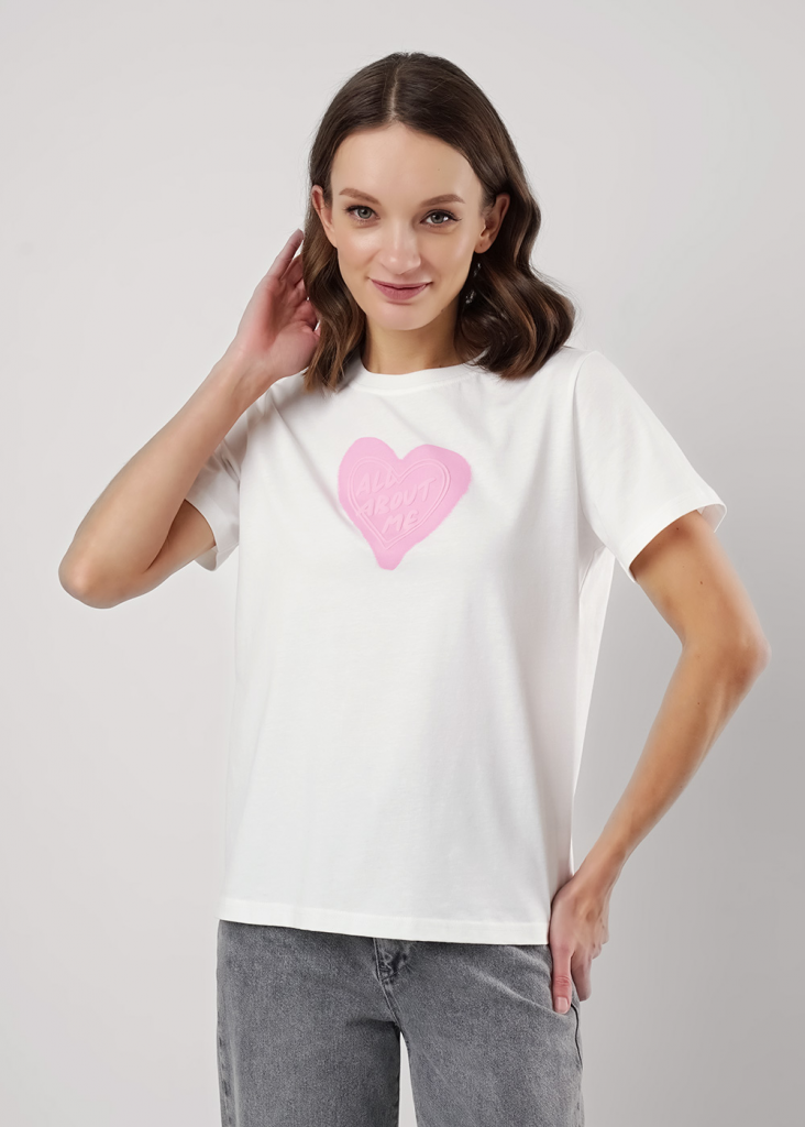 Футболка классического кроя из хлопкового трикотажного полотна. Короткий втачной рукав. Округлая горловина с обтачкой из рибаны. По переду принт вспенка.