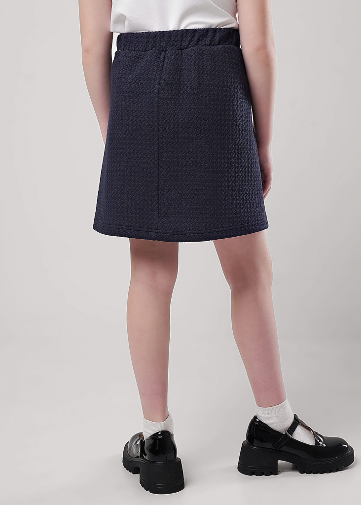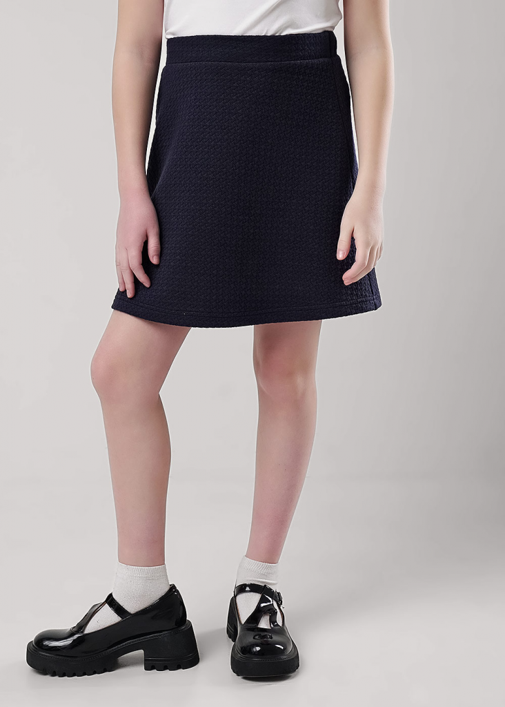 Стильная юбка из капитония станет отличным дополнением к вашему гардеробу! Комфортная посадка по фигуре, актуальный объём и длина- то, что нужно для создания повседневного школьного образа и отличного настроения!