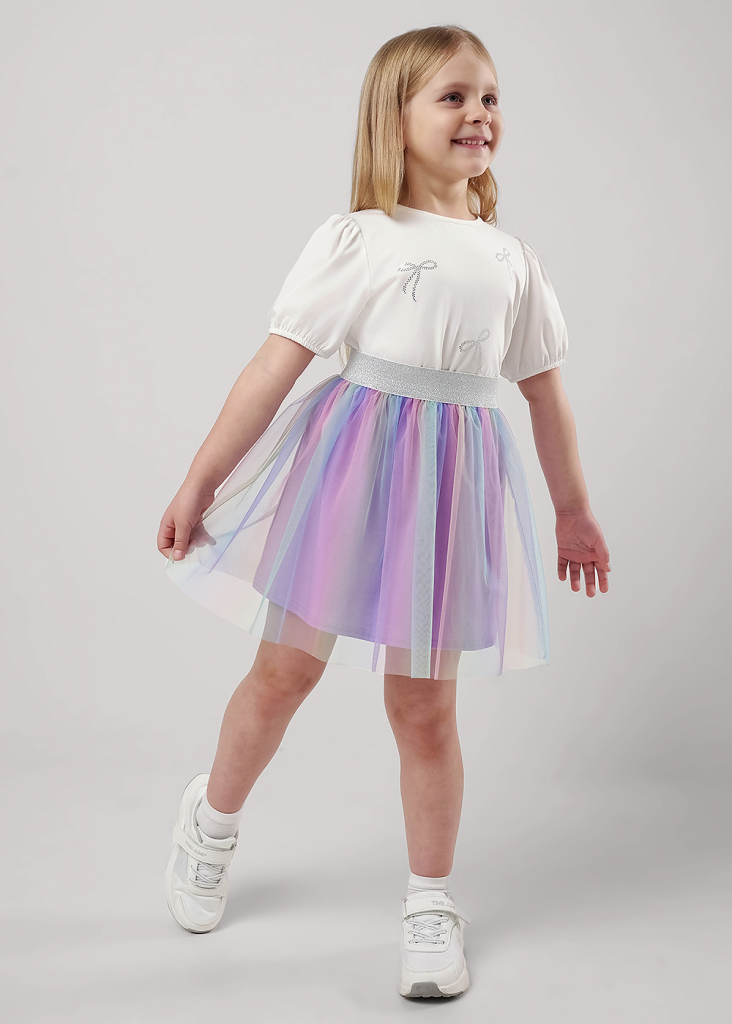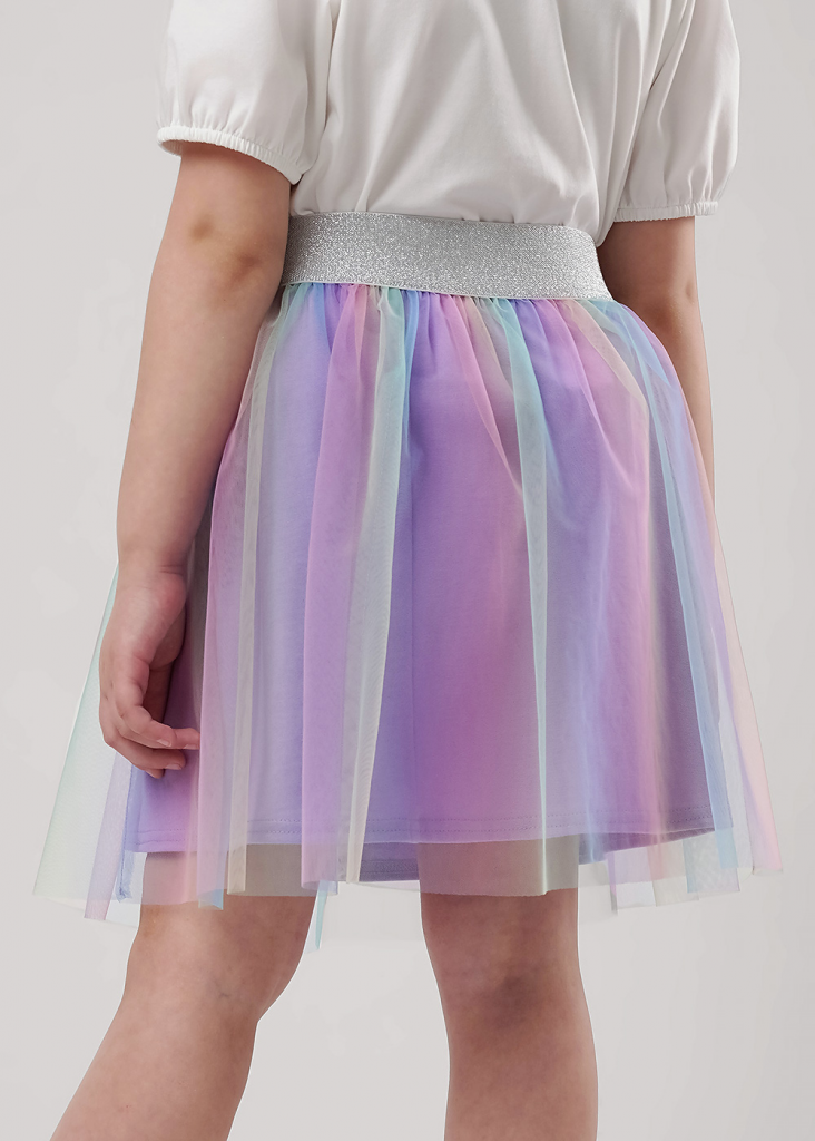 Стильная воздушная юбка из сетки с хлопковой основой. Мерцающая резинка с люрексом. Создавай волшебные образы на каждый день.