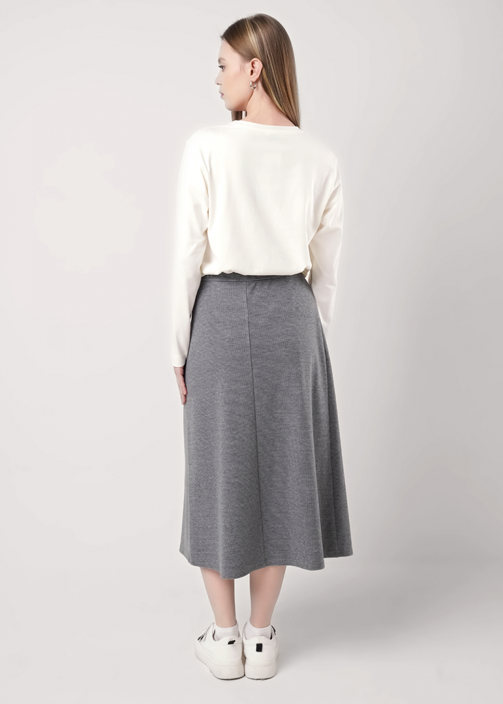 Юбка миди из поливискозного трикотажного полотна джерси. Притачной пояс с внутренней резинкой. Спереди односторонняя складка. Сзади средний шов.