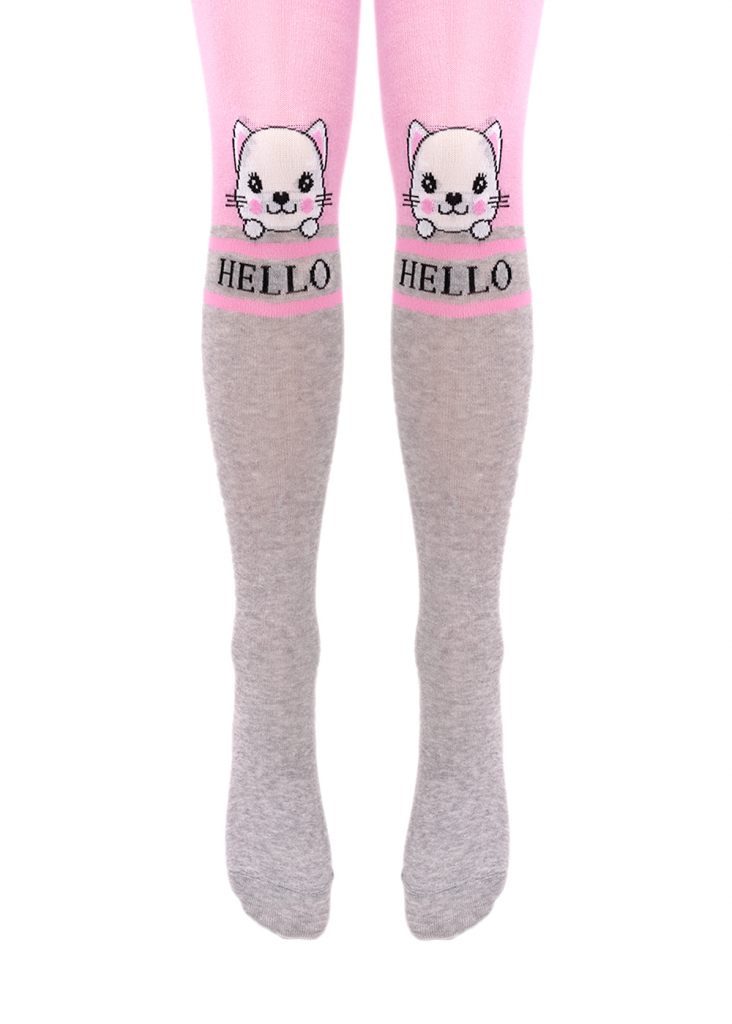 колготки для девочки с имитацией гольф, с рисунком кошки