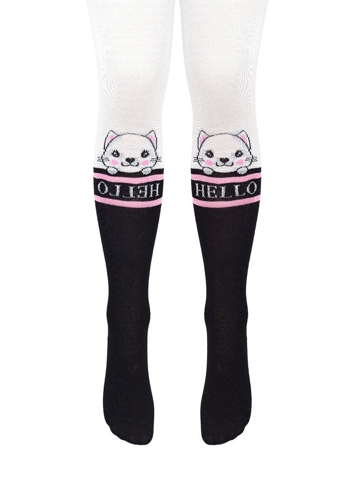 колготки для девочки с имитацией гольф, с рисунком кошки