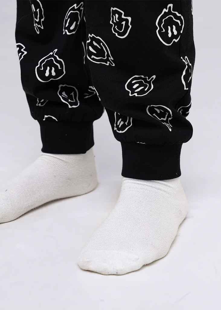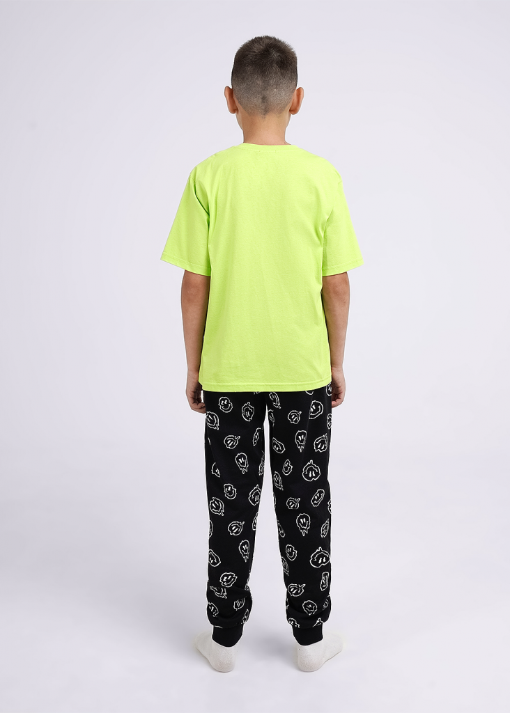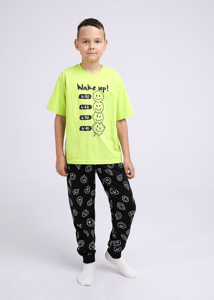Стильный хлопковый комплект для дома подарит тебе уют и комфорт! Футболка среднего объёма с эластичной горловиной и тематичным принтом. Набивные брюки с эластичными манжетами, резинка по поясу для комфортной посадки.Уют и комфорт на каждый день!