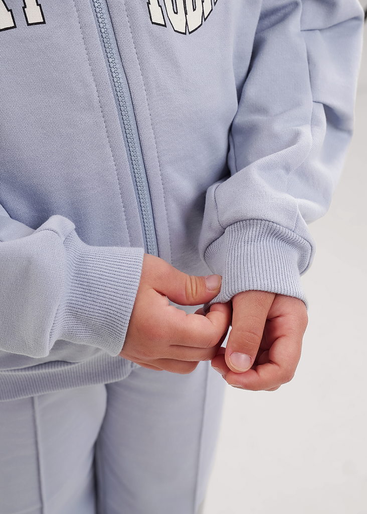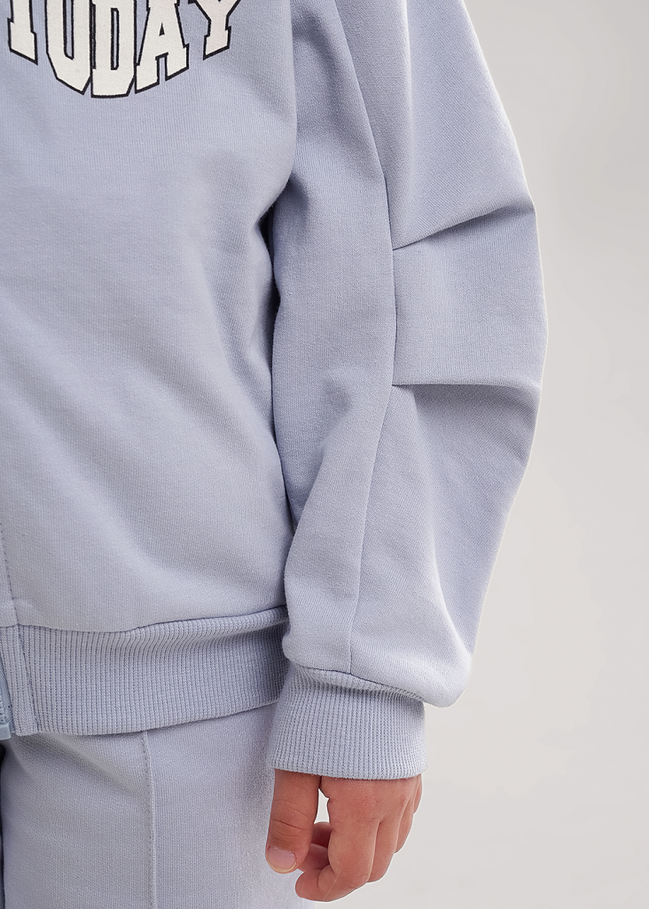Толстовка из мягкого футера идеально подойдёт для твоего классного лука и отличного настроения! Воротник, манжеты и пояс выполнены из эластичного трикотажа. Объёмные рукава с декоративными защипами- тренд сезона! Спереди модель дополнена стильным принтом