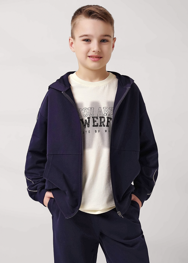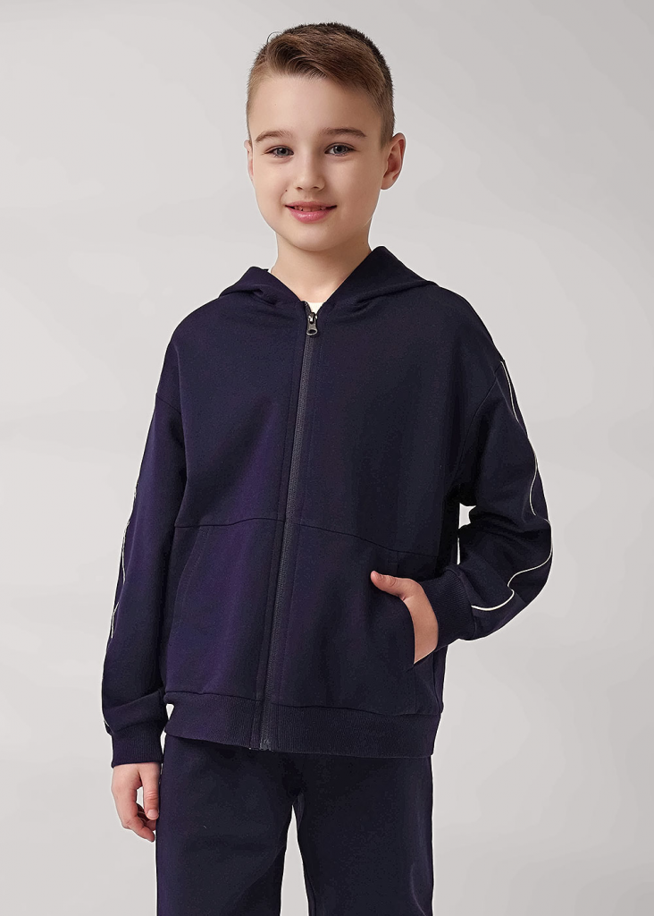 Стильная толстовка из мягкого футера отлично подойдёт для активных игр и повседневных образов. Контрастные канты на рукавах, функциональные карманы, оверсайз объём. Сочетай бомбер с брюками из новой коллеции и будь в тренде!