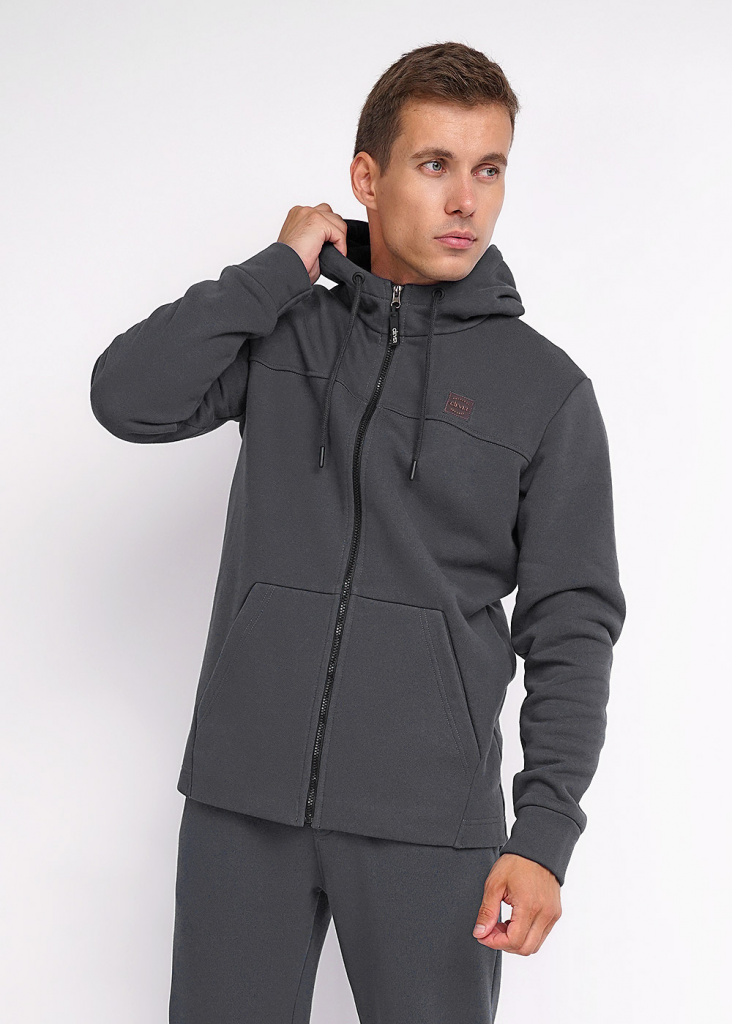 Толстовка на капюшоне с молнией из утепленного футера со шнуром и наконечниками. Благодаря карману-кенгуру спереди и рукаву с втачным рукавом с манжетами модель комфортна в носке в течении дня. Изделие привлекает внимание за счет фирменной фурнитуры.