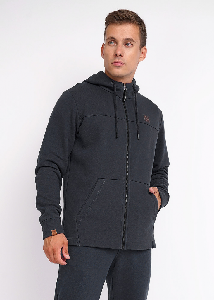 Толстовка на капюшоне с молнией из утепленного футера со шнуром и наконечниками. Благодаря карману-кенгуру спереди и рукаву с втачным рукавом с манжетами модель комфортна в носке в течении дня. Изделие привлекает внимание за счет фирменной фурнитуры.