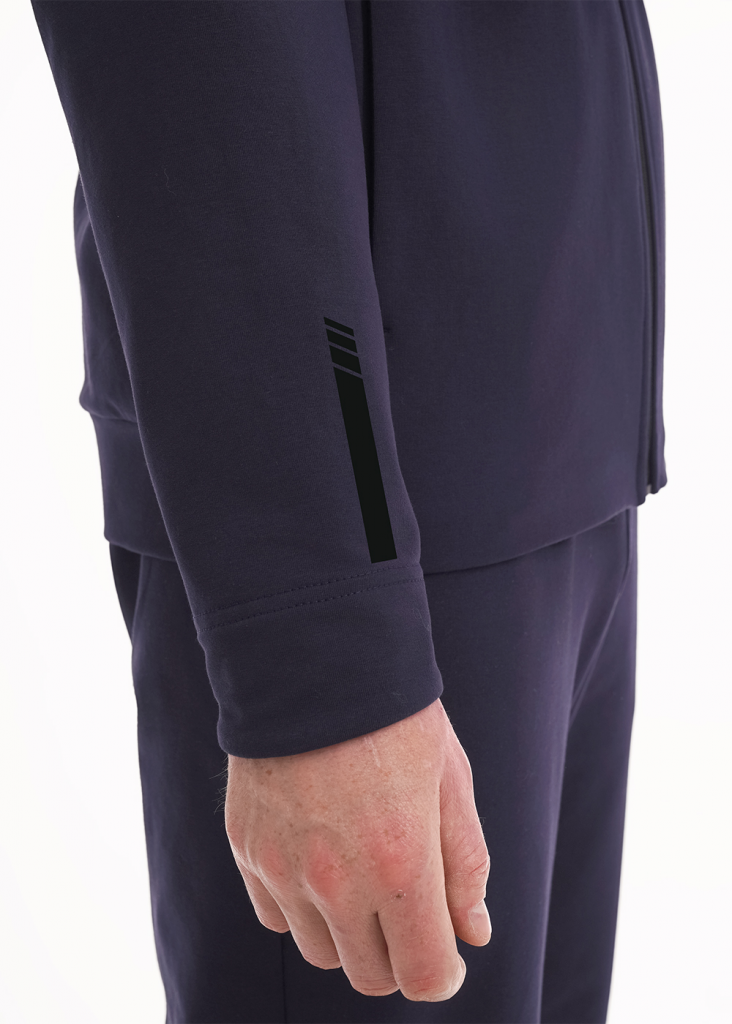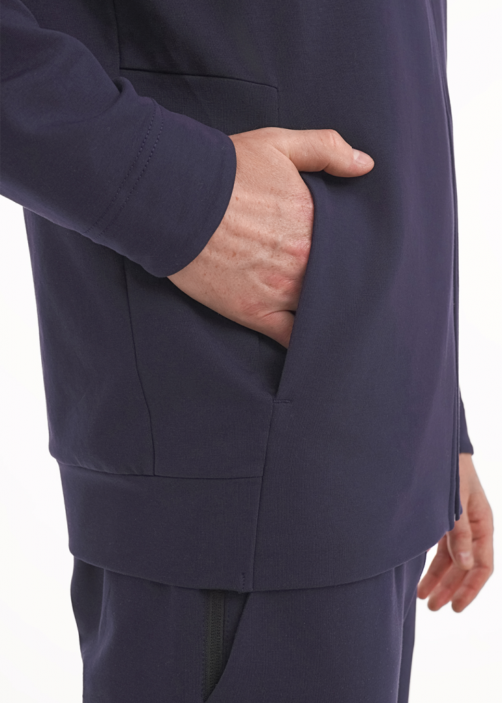 Мужская куртка из футера на молнии. Изделие дополнено 2-мя вместительными карманами на молнии, имиджевой фурнитурой и дизайнерским принтом. Комфортный и практичный вариант для активных мужчин.