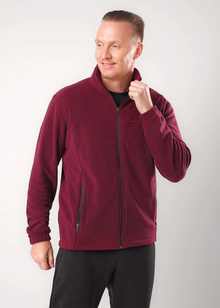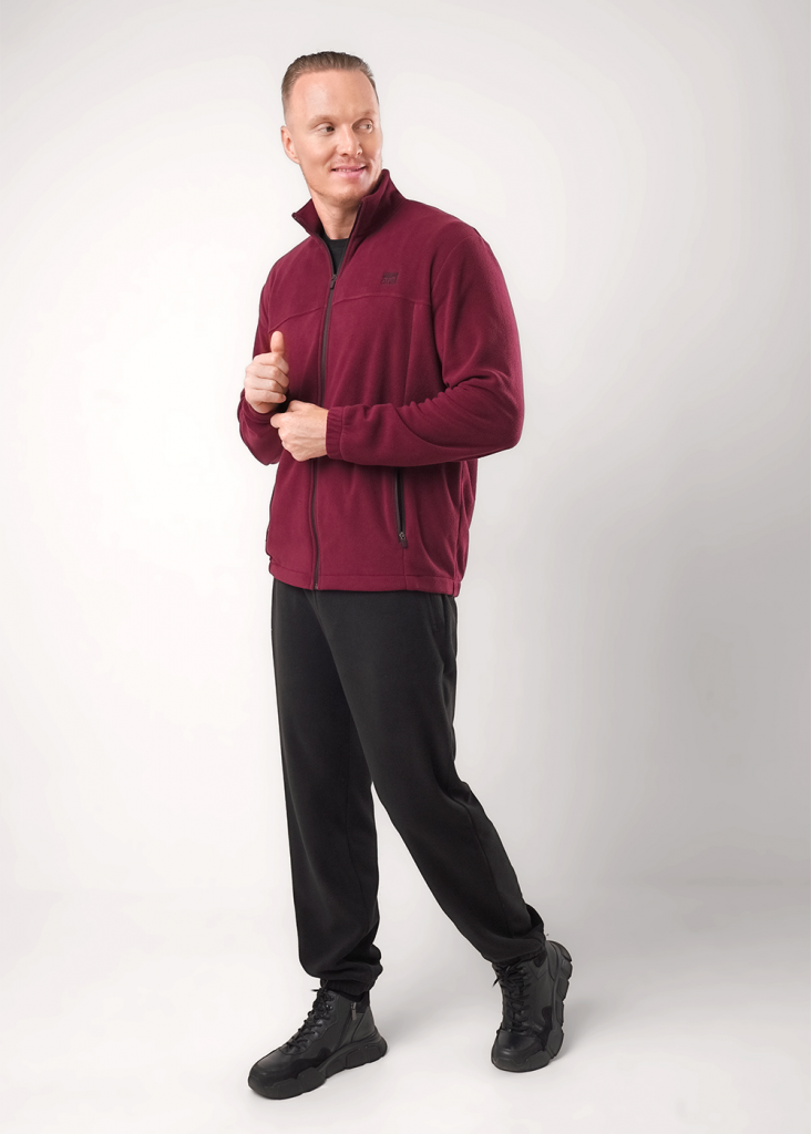 Мужская куртка из мягкого флиса со стойкой на молнии. Изделие дополнено 2-мя вместительными карманами на молнии и имиджевой вышивкой. По низу рукава и низу изделия предусмотрены манжеты. Стильный и практичный вариант.