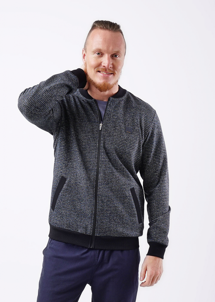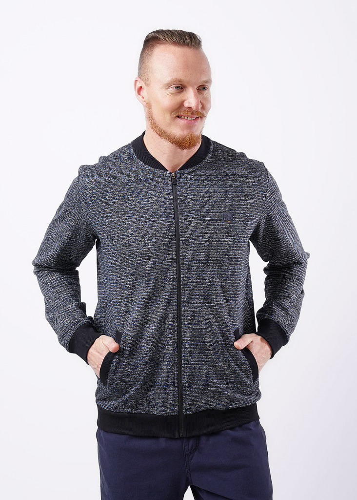 Толстовка-бомбер мужская на стойке с молнией. Спереди наклонные карманы с листочкой. Данная модель прекрасно впишется в любой гардероб, станет прекрасным дополнением к брюкам или джинсам с футболкой.