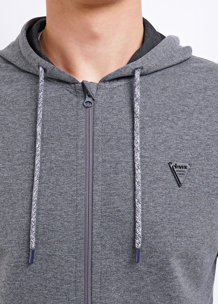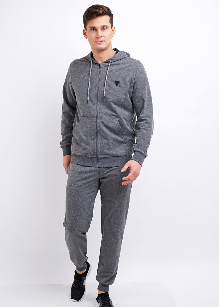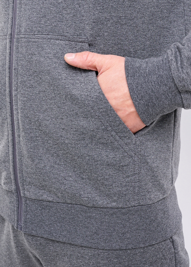 Модная куртка с капюшоном на молнии из плотного трикотажного полотна будет незаменимой вещью в гардеробе любого мужчины благодаря функциональным карманам "кенгуру" и стильной отделке изделия.