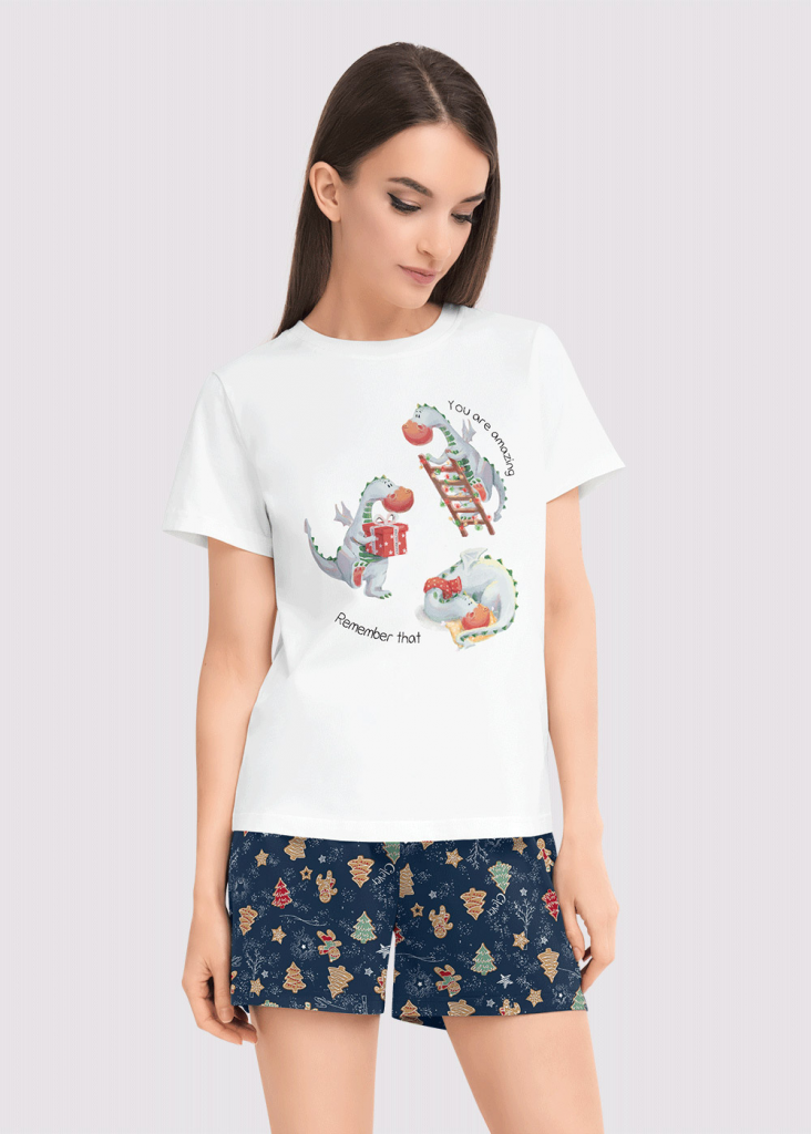 Футболка свободного кроя в молочном оттенке с новогодним принтом.