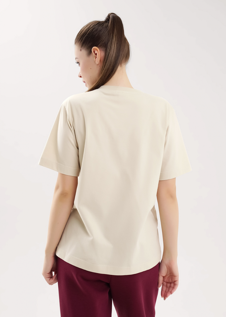 Футболка спортивная прямого силуэта из хлопкого трикотажного полотна. Короткий втачной рукав. Округлая горловина с обтачкой из рибаны. Спереди принт.
