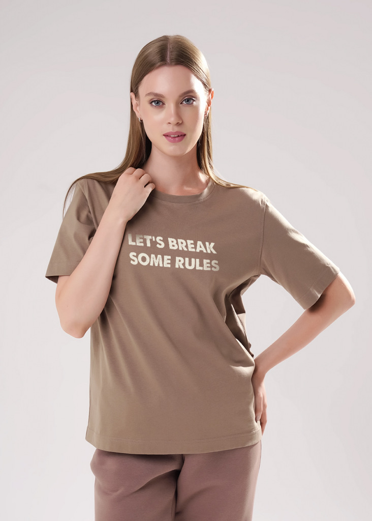 Футболка прямого силуэта из хлопкового трикотажного полотна. Короткий втачной рукав. Округлая горловина с обтачкой. Спереди принт.