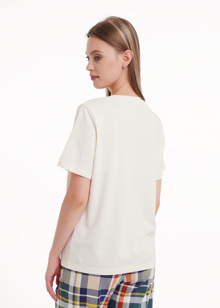 Футболка прямого силуэта из хлопкого трикотажного полотна. Короткий втачной рукав. Округлая горловина с обтачкой. Спереди принт.