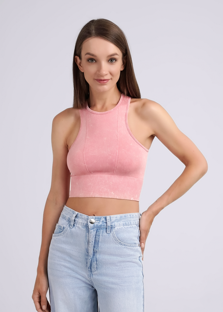 Женская майка-топ из микрофибры с эффектом "Варки". Майка плотного прилегания, по низу вывязана широкая резинка