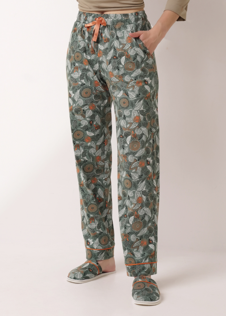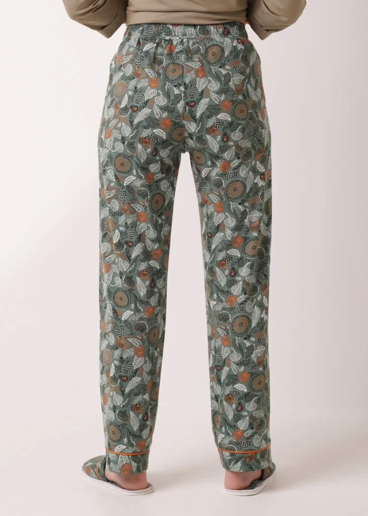 Набор одежды из хлопкового трикотажного полотна.Фуфайка прямого кроя,втачной рукав длиной 7/8, внизу манжет с отворотом,закрепкой.Спереди принт.Брюки по талии пояс на внутренней резинке с атласной лентой.Боковые карманы с отрезным бочком.Внизу брюк кант.