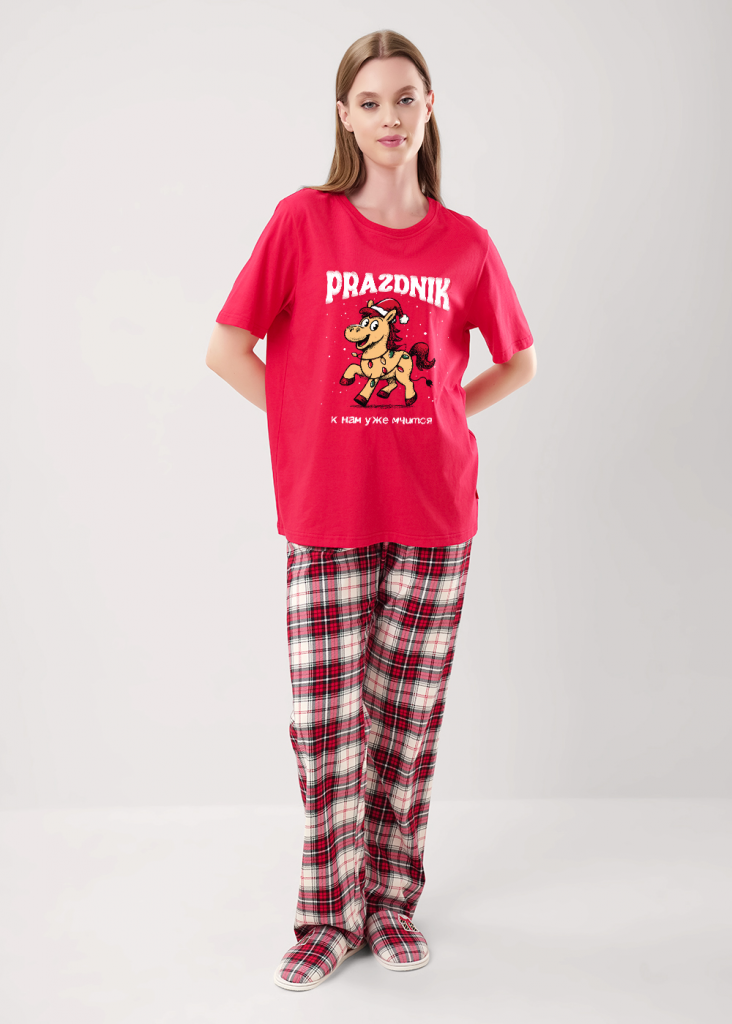 CLE LP15-1199/2 Пижама жен. Новогоднее чудо, красный/молочный