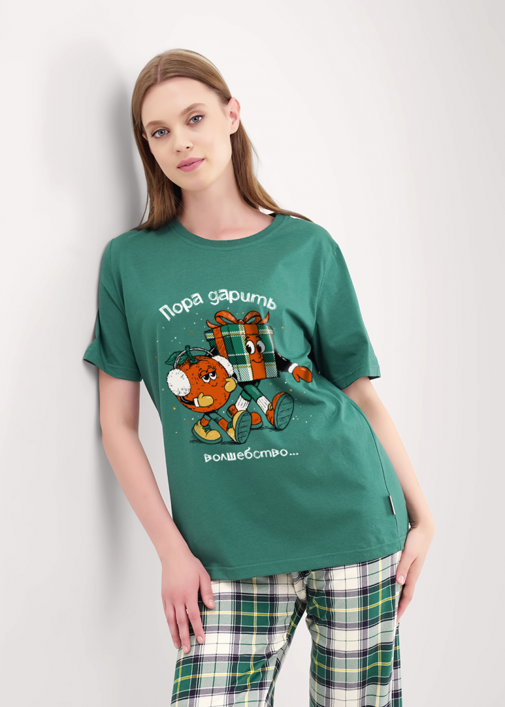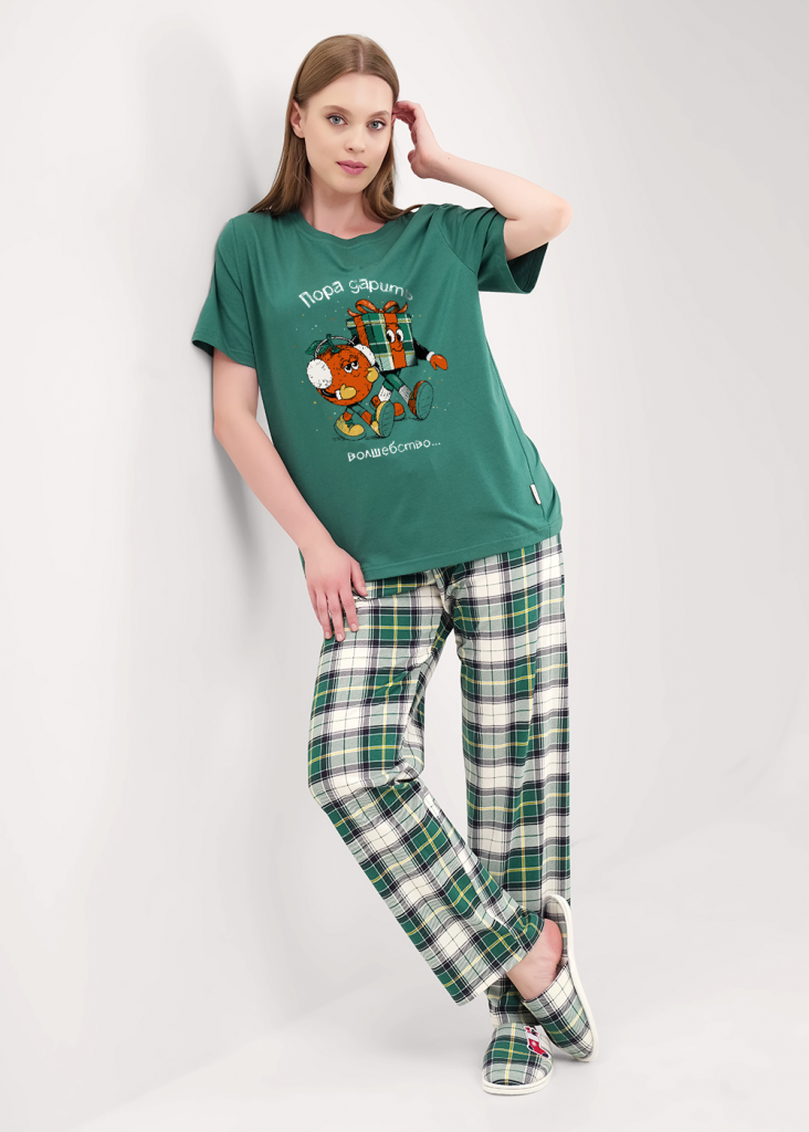 CLE LP15-1199/3 Пижама жен. Новогоднее чудо, т.зелёный/молочный