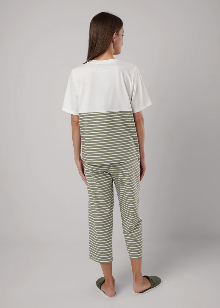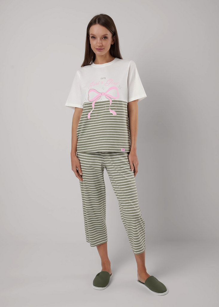 CLE LP25-1153/1 Пижама жен. Фисташковый пай, молочный/хаки