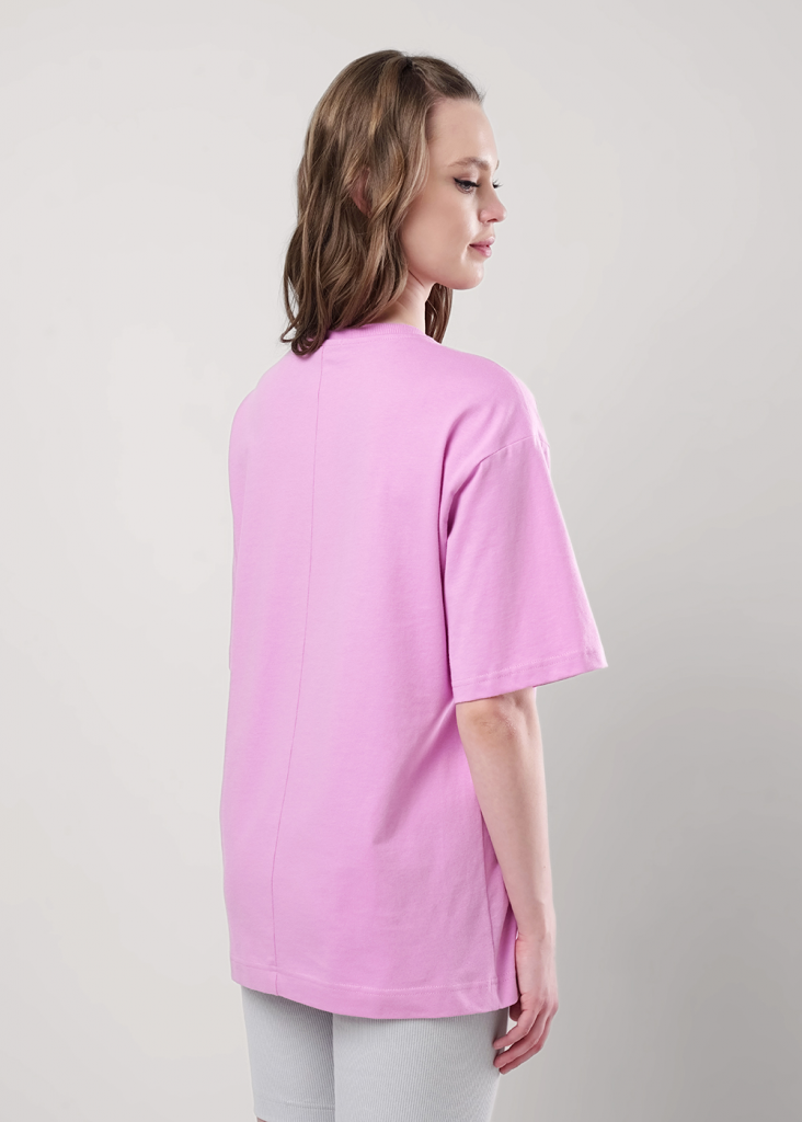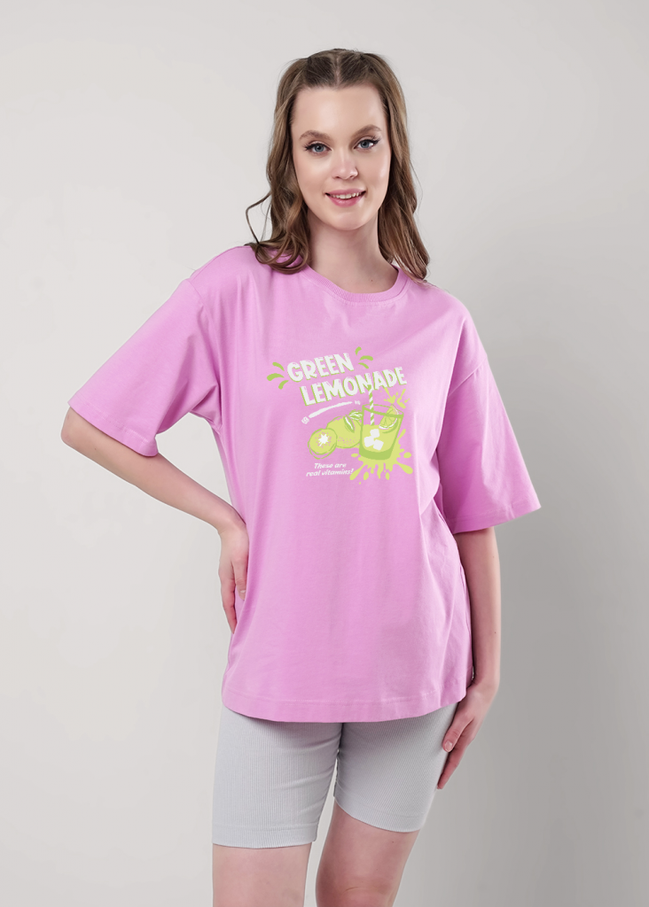 Пижама для дома.Футболка из трикотажного полотна. Округлая горловина с обтачкой. Втачной короткий рукав. Сзади средний шов.Спереди принт, нашивка.Шорты длинные, облегающие из трикотажного полотна кашкорсе.По талии притачная резинка жаккард, нашивка.