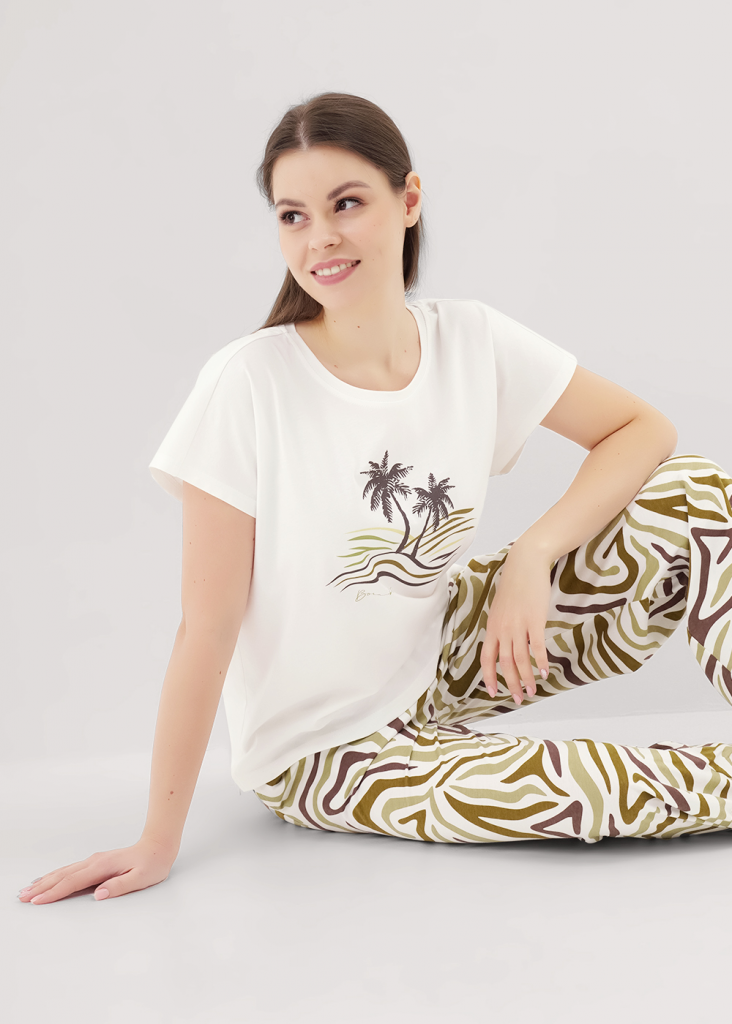 CLE LP25-1164/2 Пижама жен. Бора-Бора, молочный/хаки