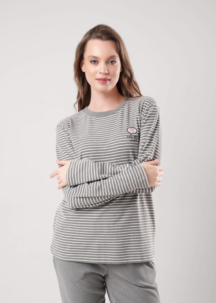Mягкий и уютный комплект из джемпера с длинным рукавом и брюк на манжете, идеален для домашнего отдыха в прохладную погоду..