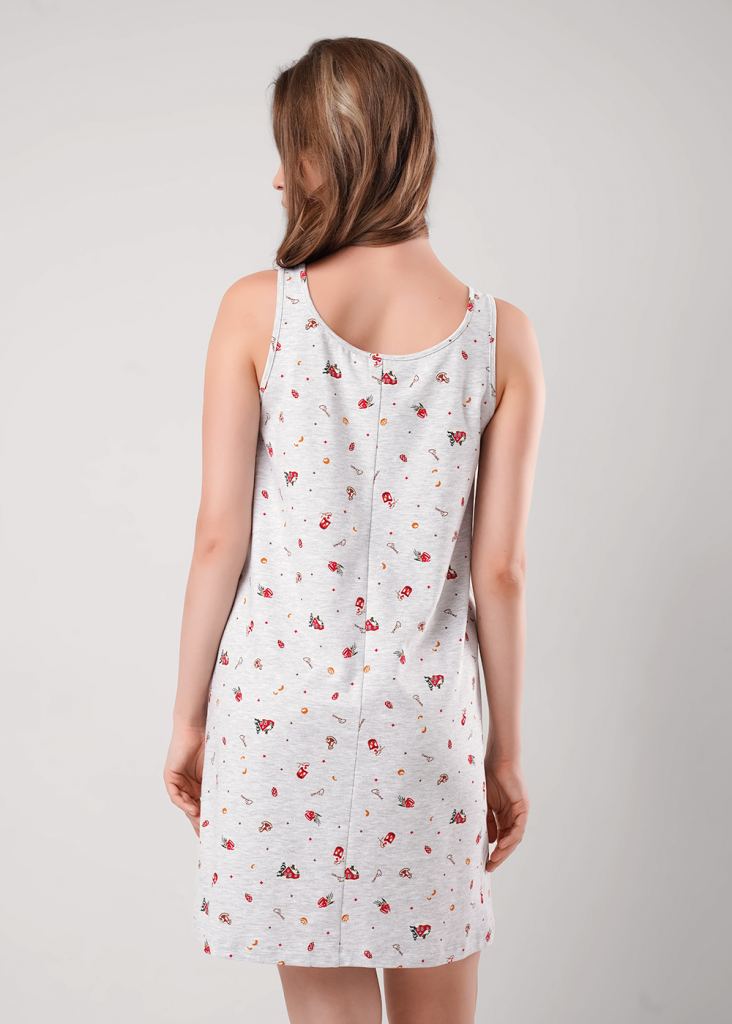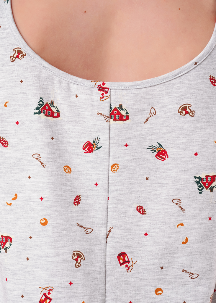 CLE LS15-1201 Сорочка ночн. жен. Морозко, меланж св.серый/красный