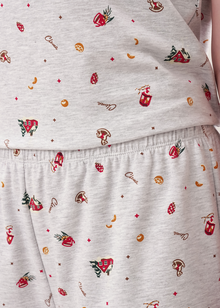 CLE LSET15-1201 Пижама жен. Морозко, меланж св.серый/красный