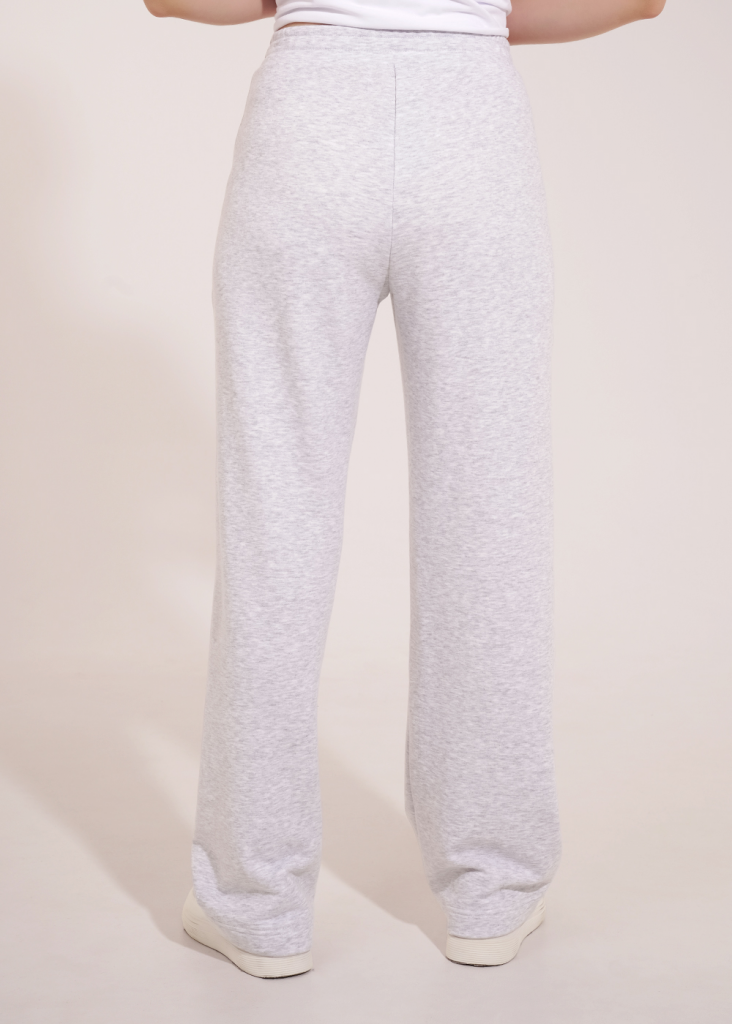 Брюки прямые спортивные из трикотажного полтна футер. По талии притачной пояс на внутренней резинке. Боковые карманы с отрезным бочком. Боковые швы переходят на перед.