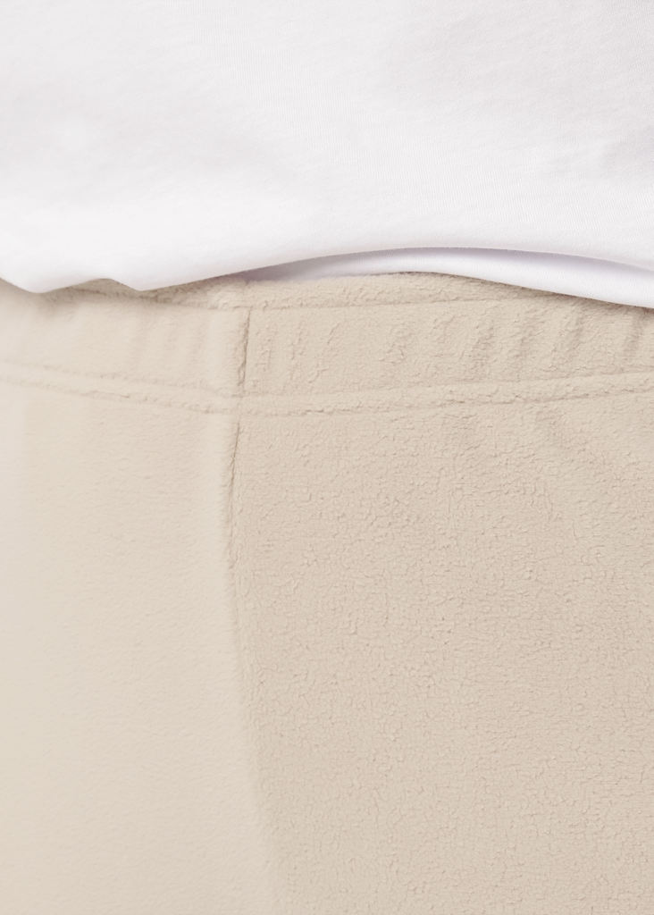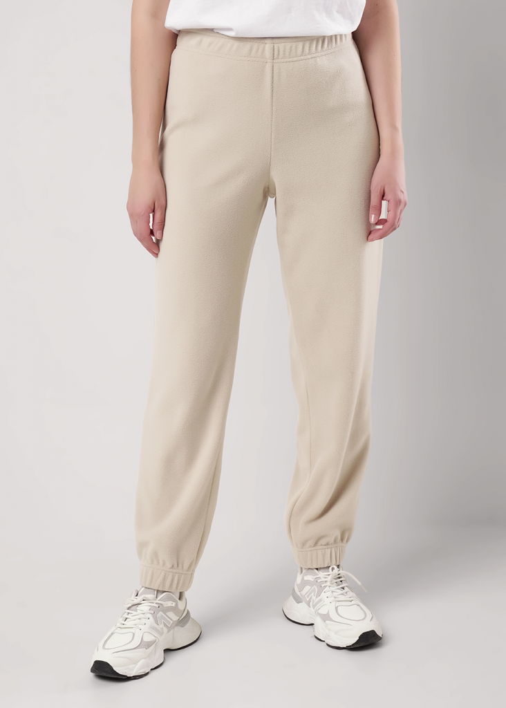 Брюки прямые из трикотажного полотна флис, с внутренней резинкой по талии и низу. Внизу брюк нашивка.