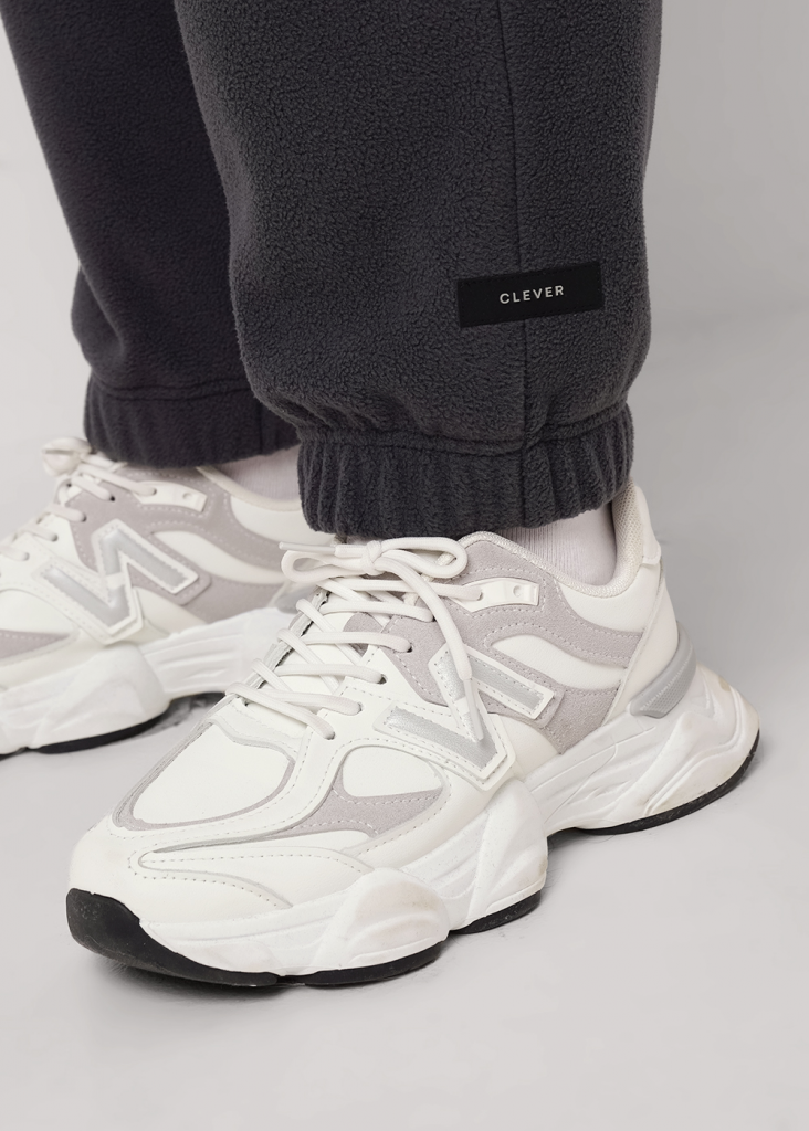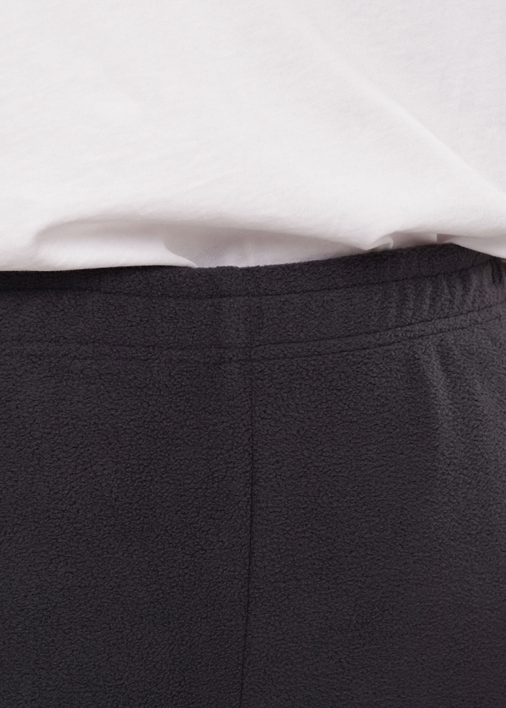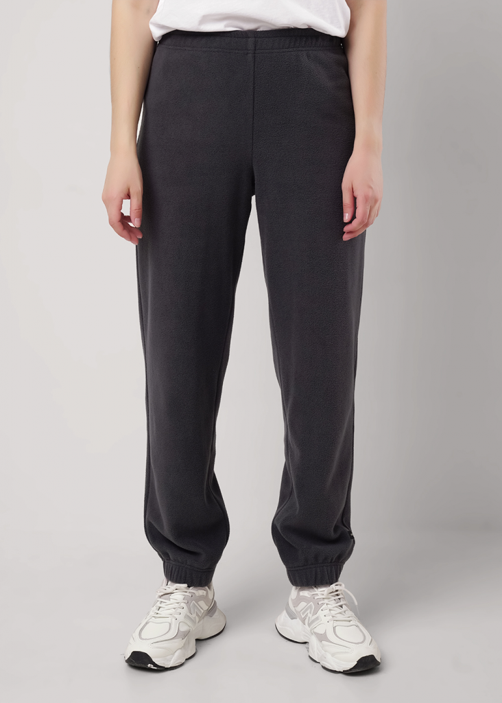 Брюки прямые из трикотажного полотна флис, с внутренней резинкой по талии и низу. Внизу брюк нашивка.