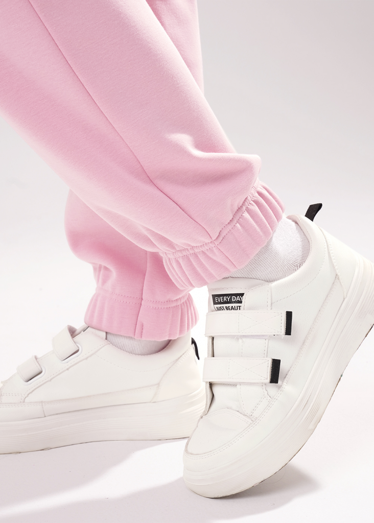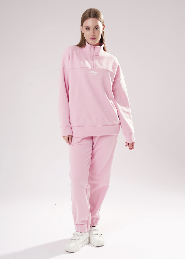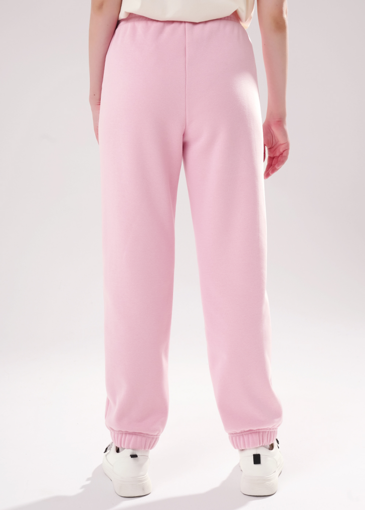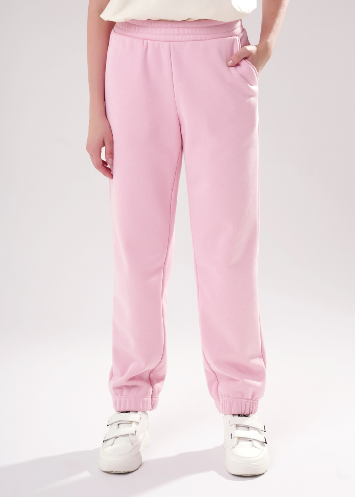 Брюки спортивные из трикотажного полотна футер с начесом "тедди",зауженные книзу. По талии пояс на резинке и внутренним шнуром. По низу брюк подгибка с внутренней резинкой. Боковые карманы с отрезным бочком.