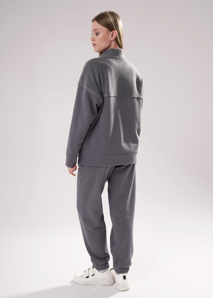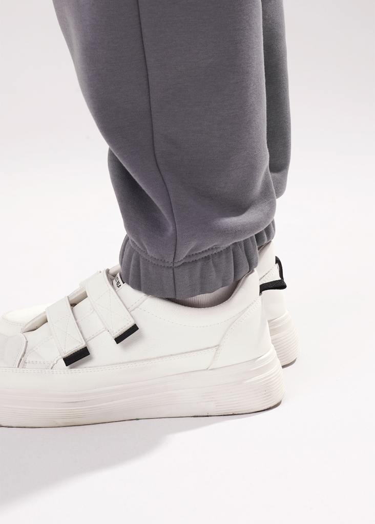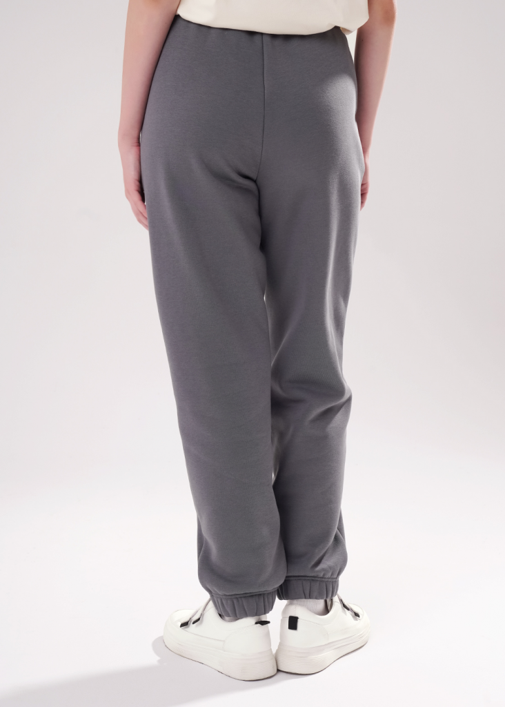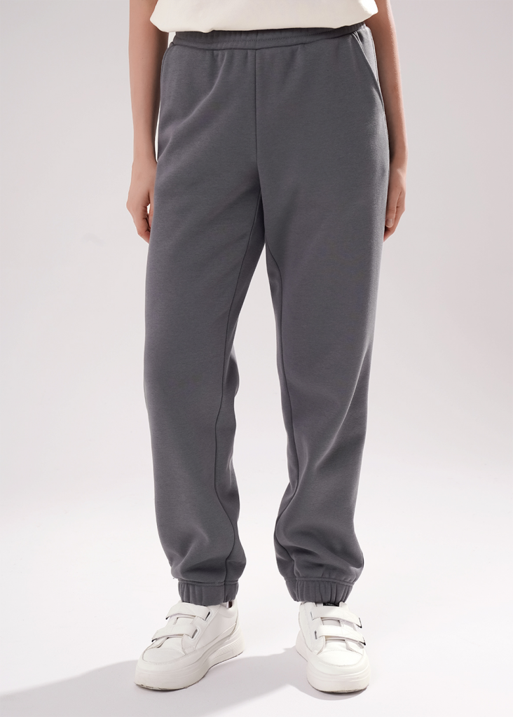 Брюки спортивные из трикотажного полотна футер с начесом "тедди",зауженные книзу. По талии пояс на резинке и внутренним шнуром. По низу брюк подгибка с внутренней резинкой. Боковые карманы с отрезным бочком.