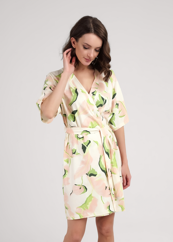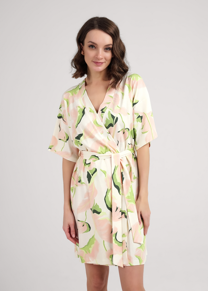 CLE LX25-1111 Халат жен. Сен-Тропе, персиковый/св.зелёный