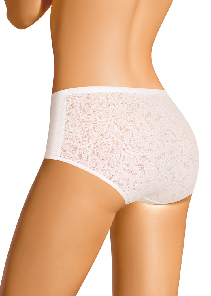 Трусы макси женские из эластичного ажурного полотна, по переду ажурное полотно дублируется хлопковым. Обработка краев по талии и ноге окантовочная резинка.