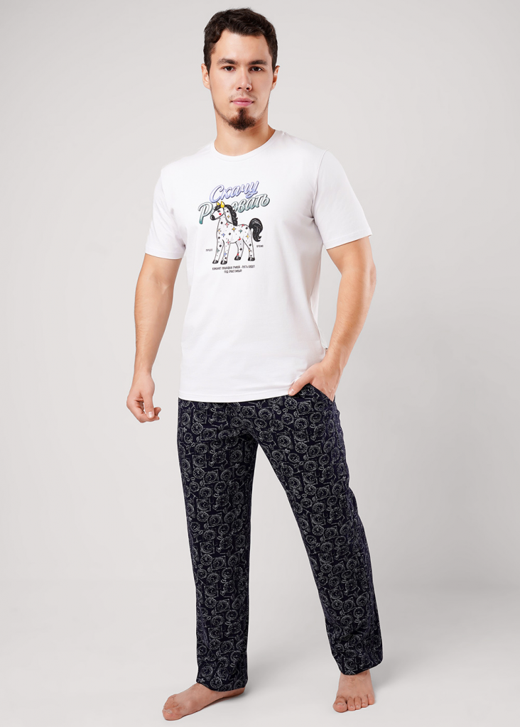 Футболка мужская с коротким рукавом и округлой горловиной, из дышащего хлопкового трикотажного полотна с добавлением эластана для прочности. Оригинальность модели придаёт авторский принт. Создай свой стильный образ вместе с Clever .