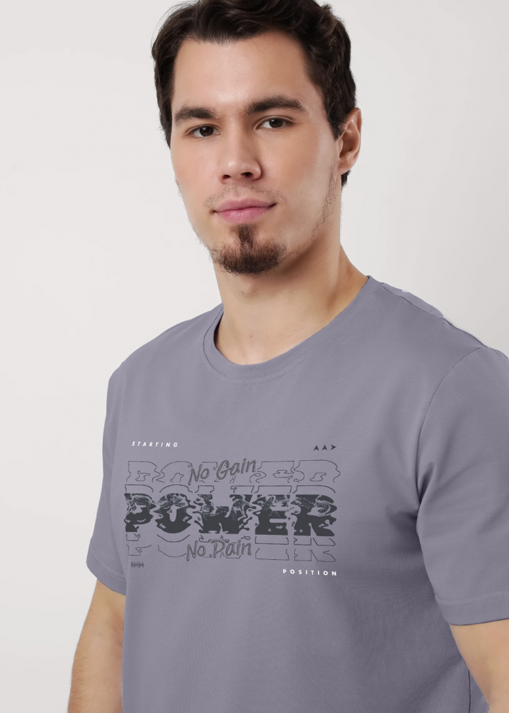 Футболка мужская с коротким рукавом и округлой горловиной, из дышащего хлопкового трикотажного полотна с добавлением эластана для прочности. Оригинальность модели придаёт дизайнерский принт.