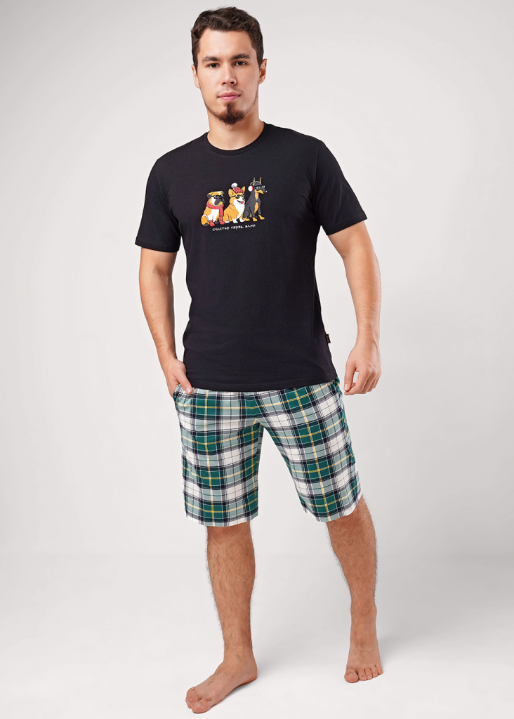 Мужские шорты из трикотажного полотна в набивку на широком поясе с резинкой, регулируемым шнуром и боковыми карманами. Создай свой стильный образ вместе с домашними шортами Clever .