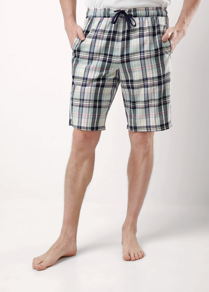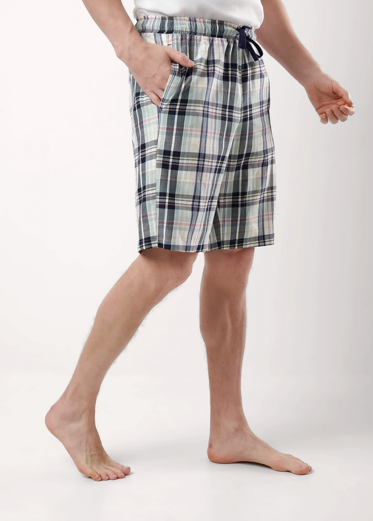 Шорты мужские из клетчатого поплина на широком поясе с резинкой и регулируемым шнуром, по бокам удобные карманы. Отлично решение для создания стильного образа.