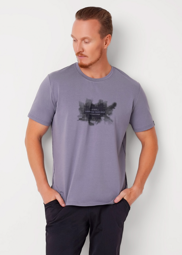 Набор состоящий из футболки и брюк. Футболка из хлопковой кулирной глади с добавлением эластана с коротким рукавом и принтом. Брюки из плотной хлопковой кулирной глади с добавлением эластана на широком поясе с резинкой и шнуром, по бокам карманы.