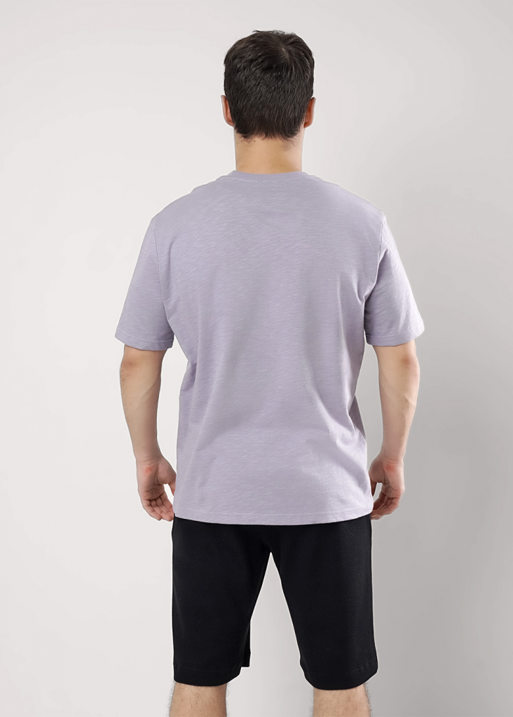 Комплект мужской для дома состоящий из футболки и шорт. Футболка из фактурного трикотажного полотна с круглым вырезом горловины, коротким рукавом и стильным принтом. Шорты из фактурного полотна на эластичном поясе с функциональными карманами и шнуром.