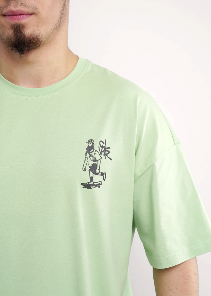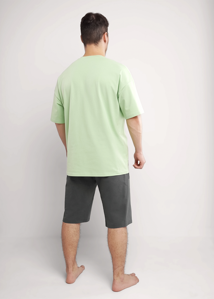 Набор мужской для дома состоящий из футболки и шорт. Футболка из однотонной кулирной глади с круглым вырезом горловины, декоративным резом, коротким рукавом и стильным принтом. Шорты из футера на эластичном поясе с функциональными карманами и шнуром.