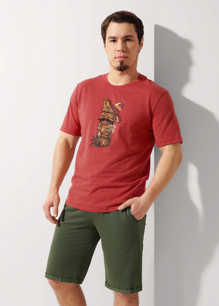 Набор мужской для дома: футболка из фактурного хлопкового полотна "флам" с округлой горловиной с игровым принтом. Шорты из фактурного трикотажного полотна "пике" на широком поясе с резинкой и регулируемым шнуром, по бокам удобные карманы.