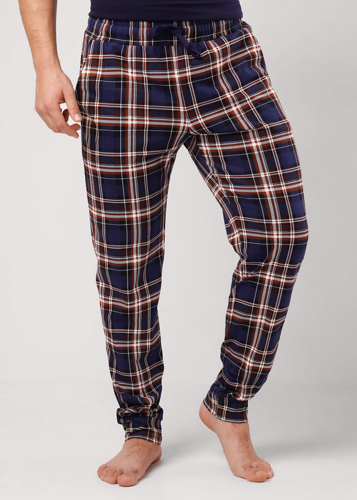 Мужские домашние брюки на манжете из хлопковой кулирной глади с карбоном в клетку. Мягкие и комфортные, прекрасно держат форму и не сковывают движений. Отличное решение для создания стильного образа на каждый день.