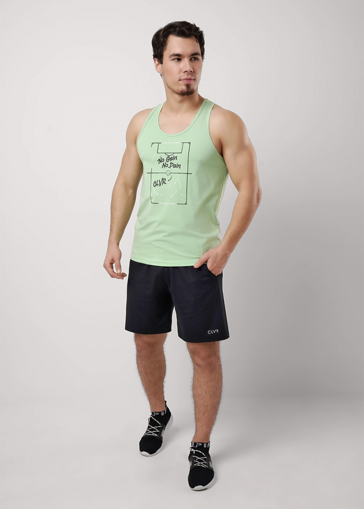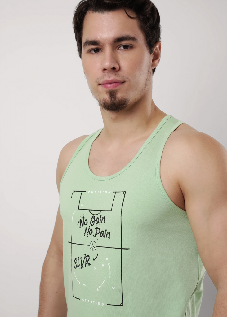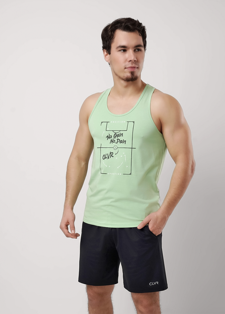 Мужская майка-борцовка из хлопкового полотна с эластаном на широких бретелях с авторским принтом. Длина у изделия стандартная. Майка идеально подходит для занятий спортом и повседневной носки.