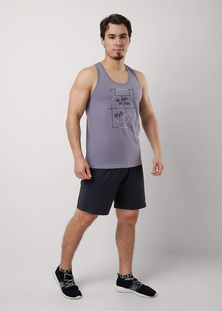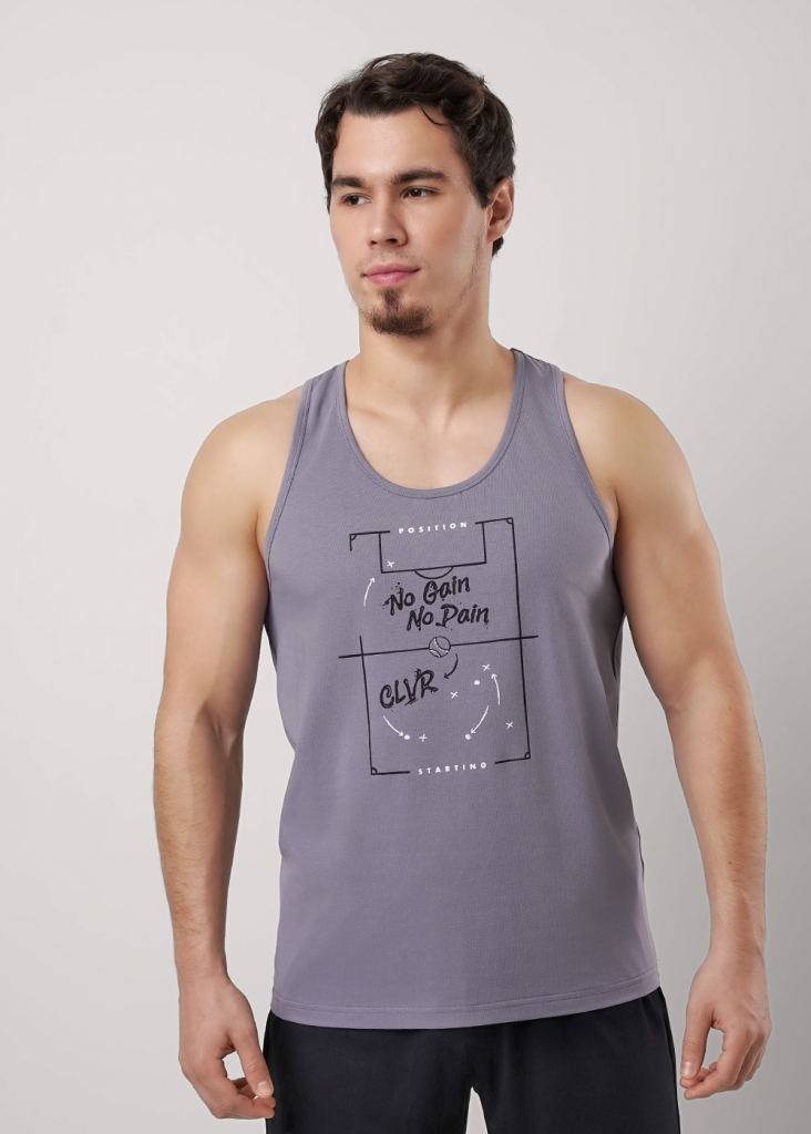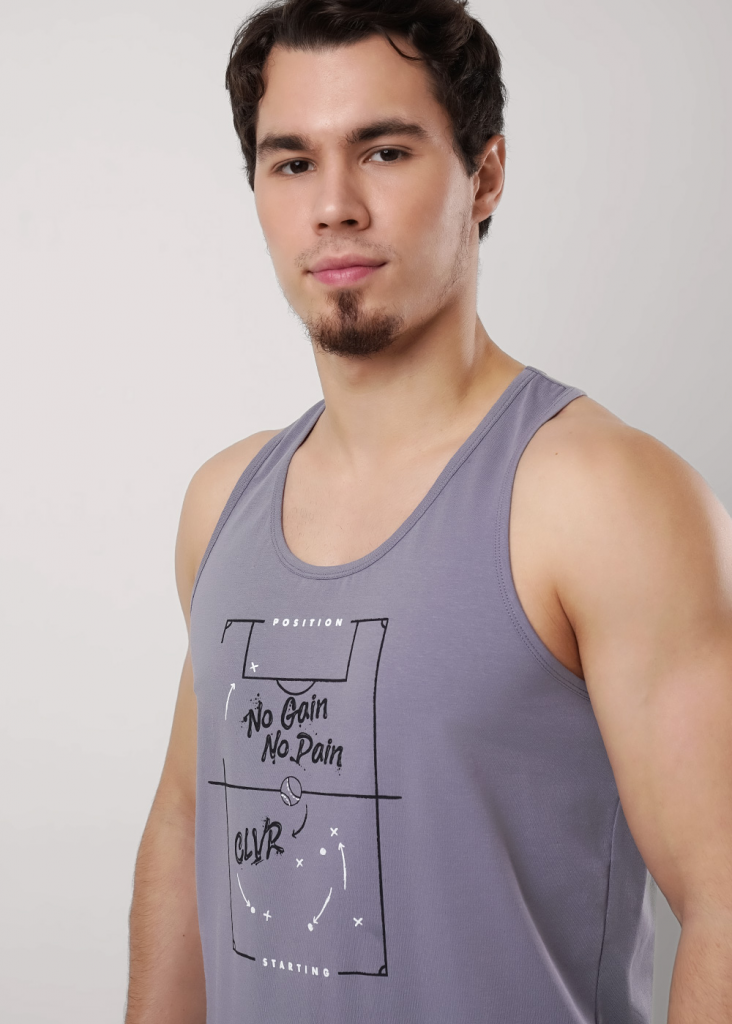 Мужская майка-борцовка из хлопкового полотна с эластаном на широких бретелях с авторским принтом. Длина у изделия стандартная. Майка идеально подходит для занятий спортом и повседневной носки.