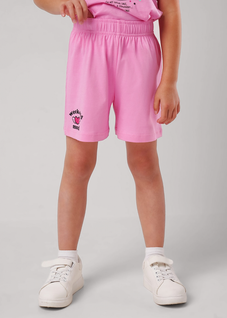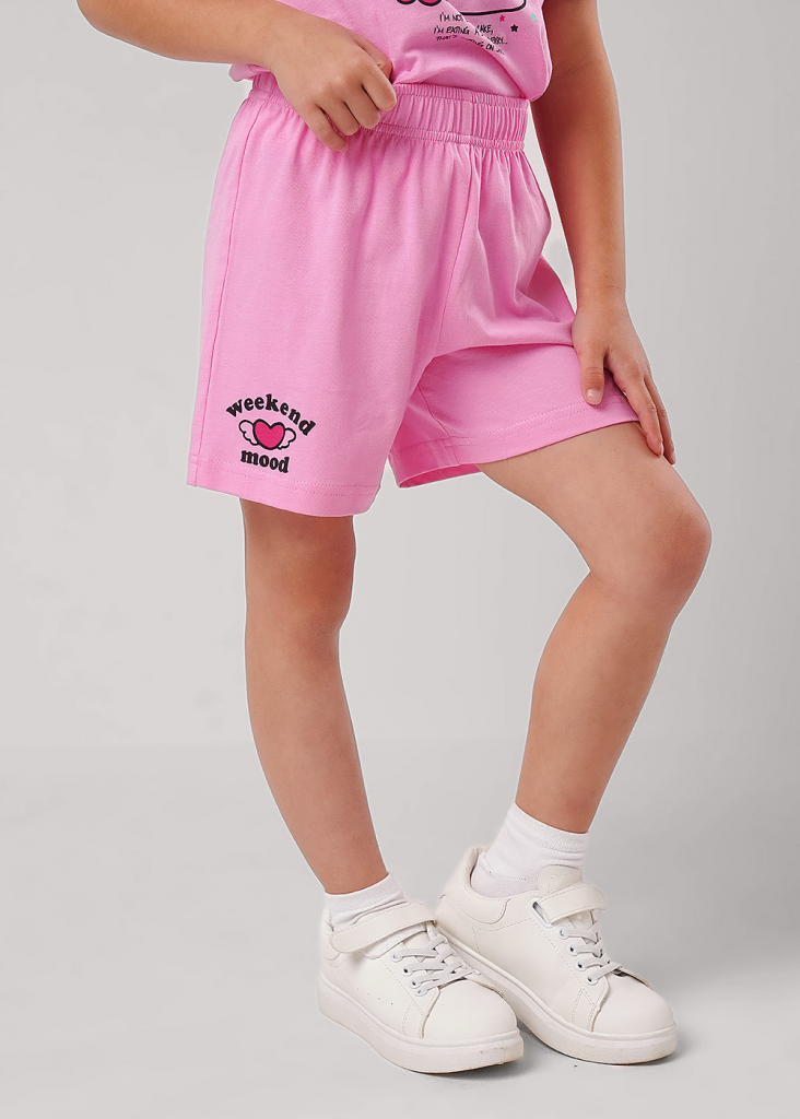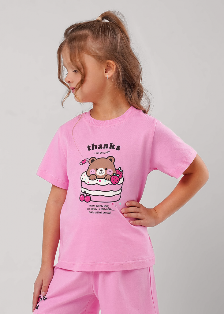 Комплект из футбоки и шорт для девочки. Футболка из 100% хлопка, украшена милым принтом!Стильные базовые шорты из натурального трикотажного полотна отлично подойдут для занятий спортом и повседневной носки.