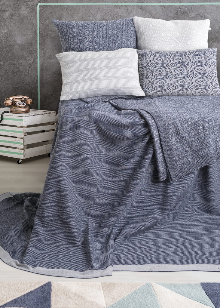 Вязаная наволочка с тематическим жаккардовым рисунком с потайной молнией декорирована имиджевой нашивкой